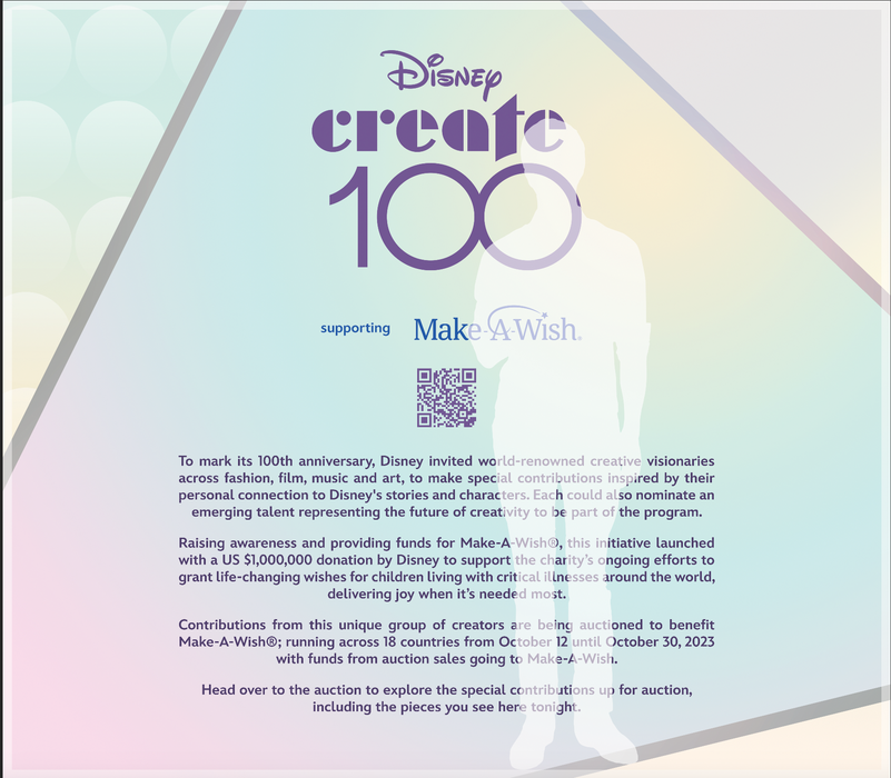 To celebrate one century of The Walt Disney Company's incorporation, D23: The Ultimate Disney Fan Club, threw a DISNEY100 STUDIO LOT CELEBRATION on the Walt Disney Studio Lot for Gold Members, which stayed open for Cast Members to enjoy the next day. I had the opportunity to create the Cast Member name tag along with themed wall graphics for a Make-A-Wish auction display space with Melanie Lapovich and Troy Ertel.